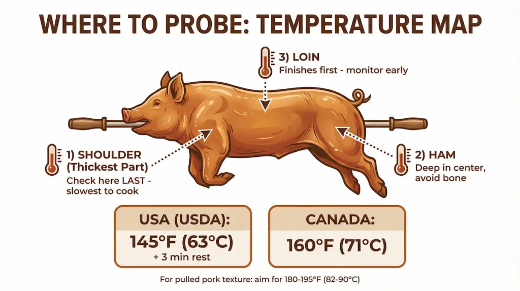 2. Temperature: Check the internal temperature of the pig in a few spots (see