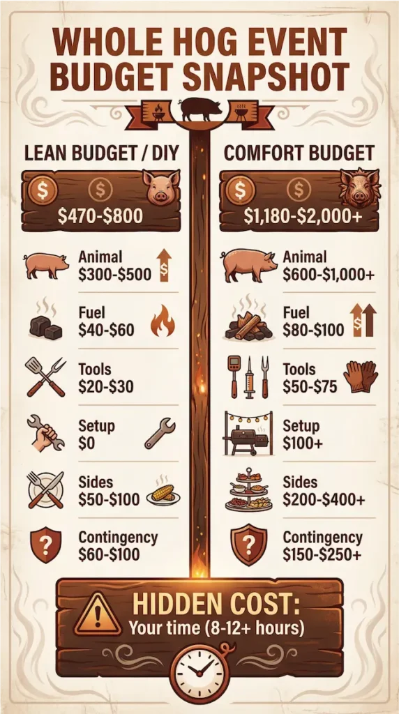 A simple budget table for a whole-hog/whole-lamb event