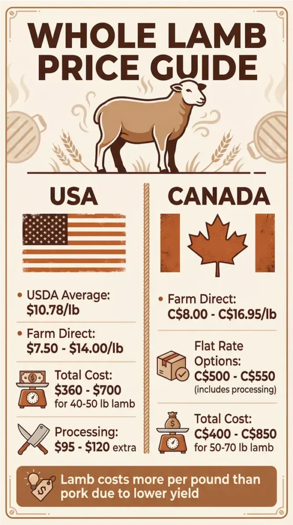Some farms offer a flat rate for a whole lamb, such as C$500 or C$550, which often